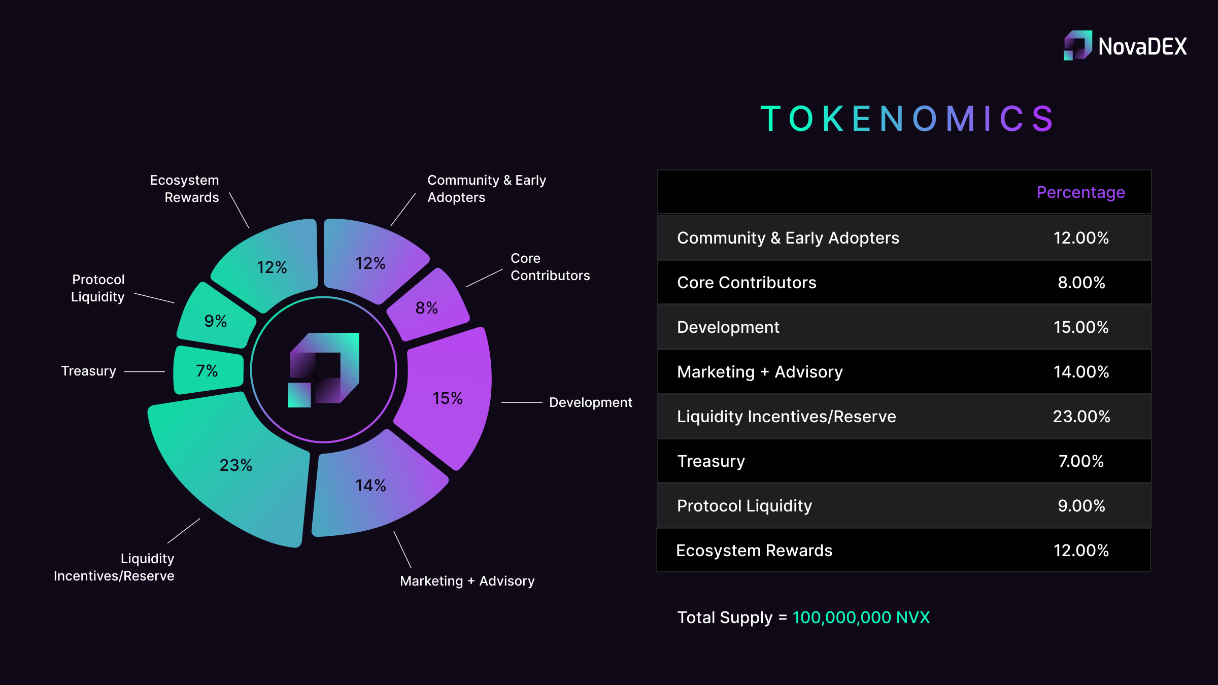 There are 100M $NVX tokens. NVX’s distribution is as follows: